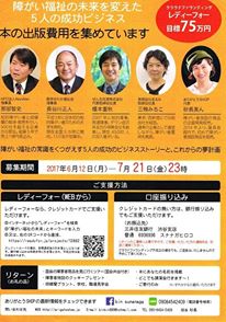 障がい福祉の未来を変えた、 5人の成功ビジネス本を出版したい! 障がい者の学ぶ、働く、生活保障の先駆者達5人の成功ノウハウを本にします。 https://readyfor.jp/projects/12882 ⇔ 詳しく […]